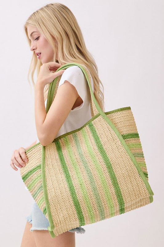 Green Multi Color Straw Tote Bag