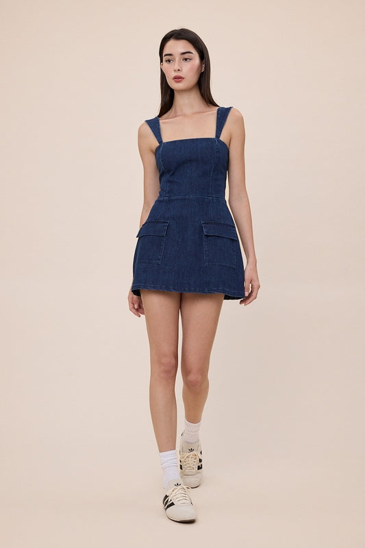 Denim Square Neck Plain Romper