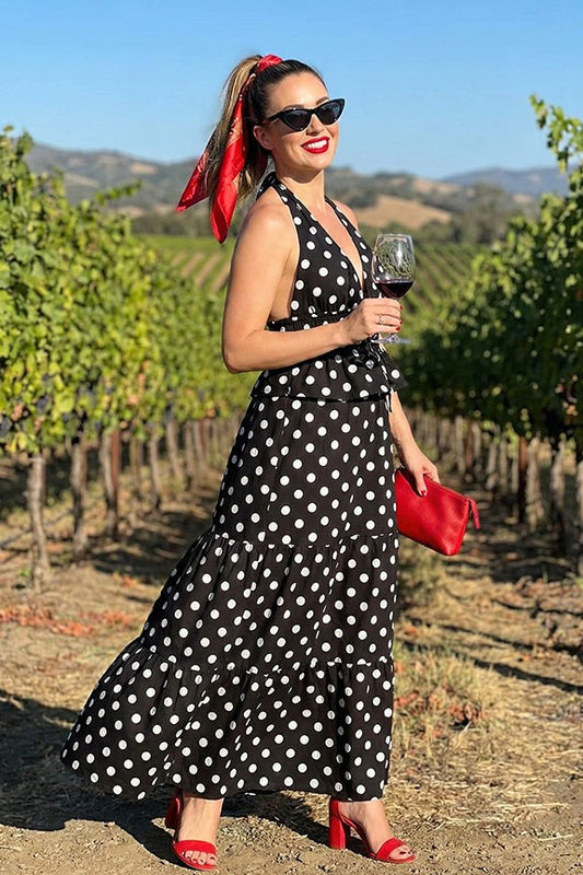 Polka Dot Halter Top & Maxi Skirt Set